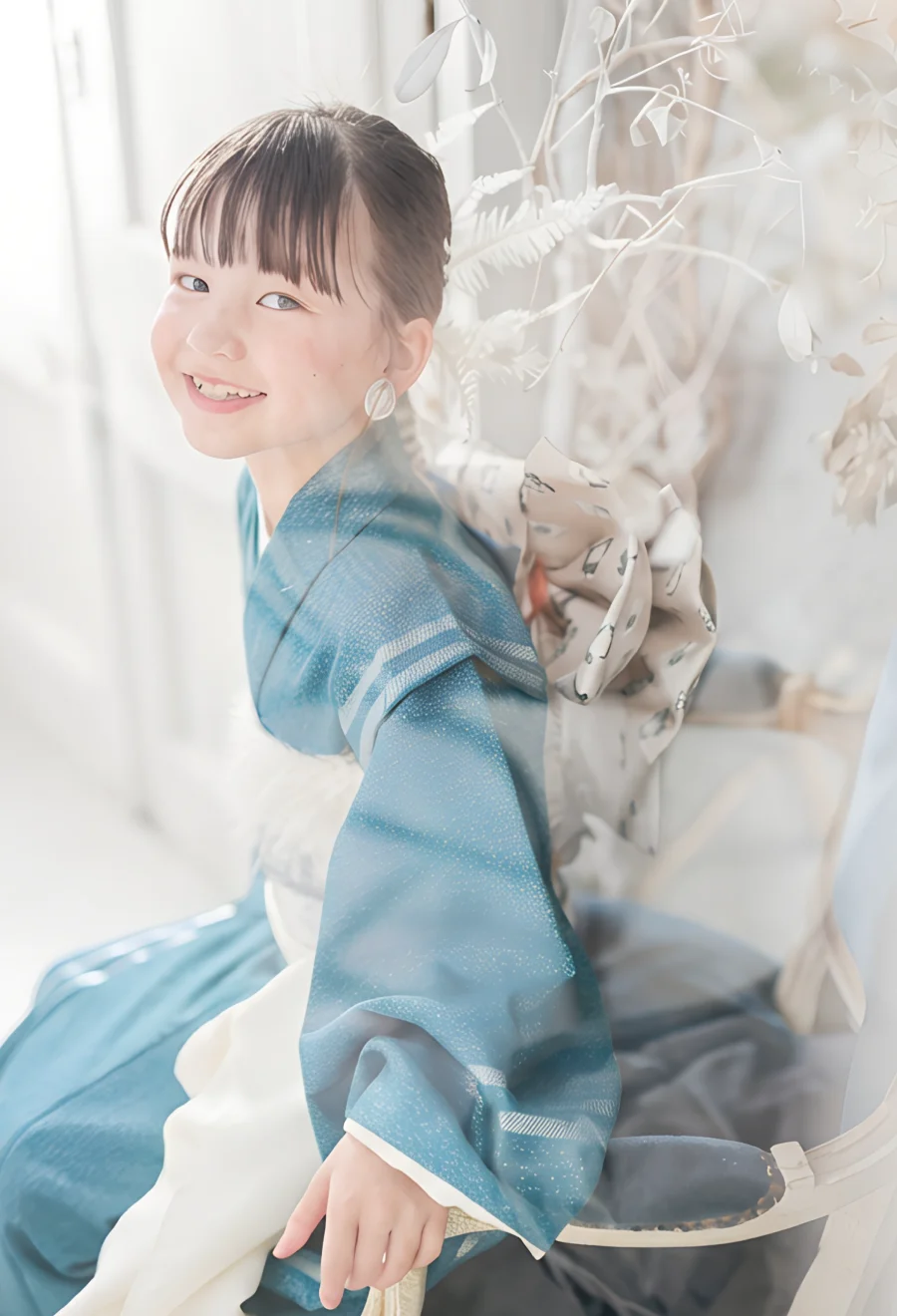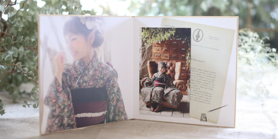 大きな窓から降り注ぐ自然光と、本物のアンティーク家具が調和する空間で、お子様の自然で美しい表情を描き出します。
