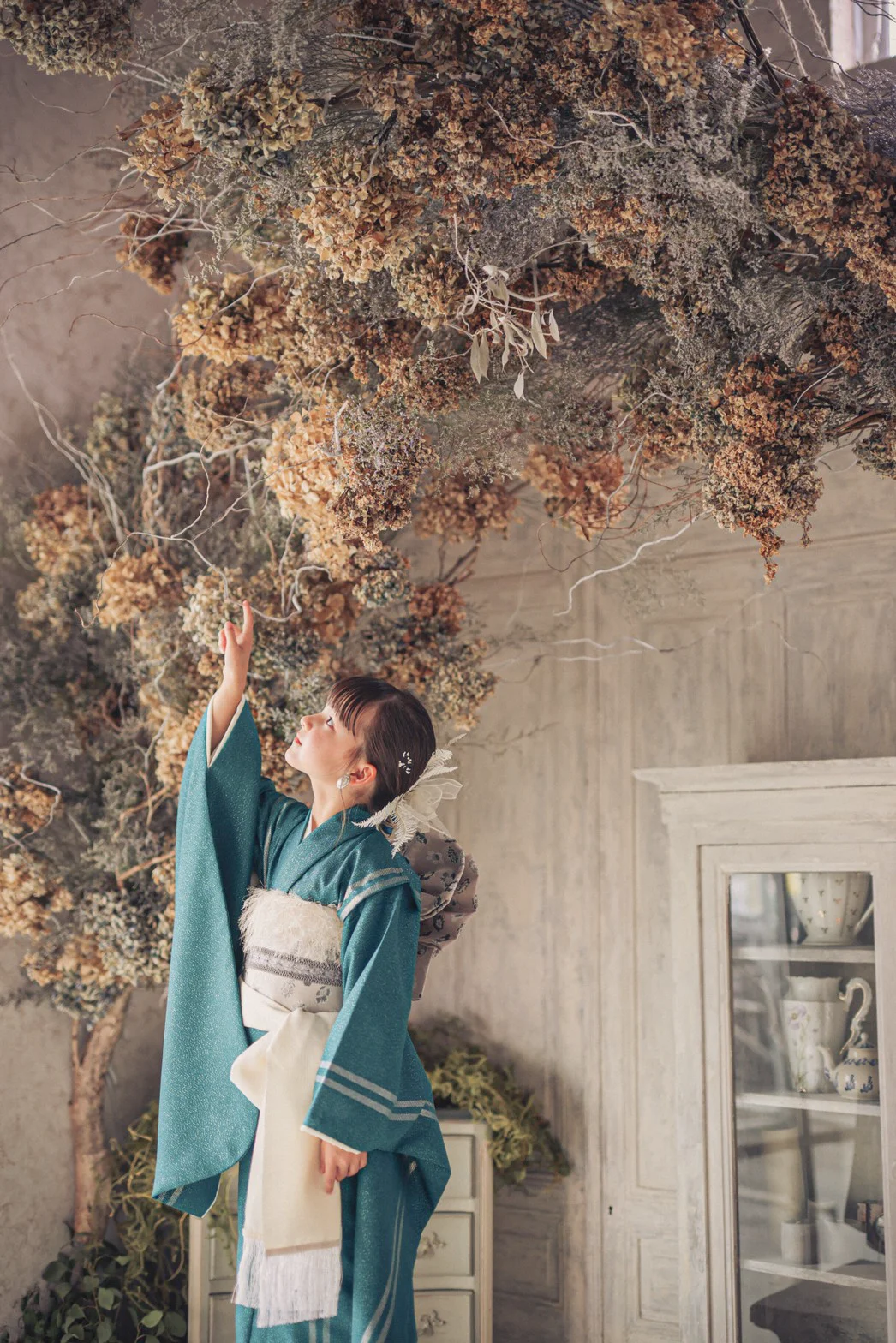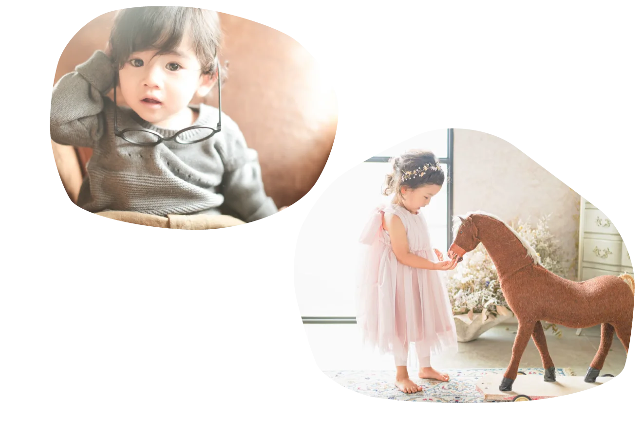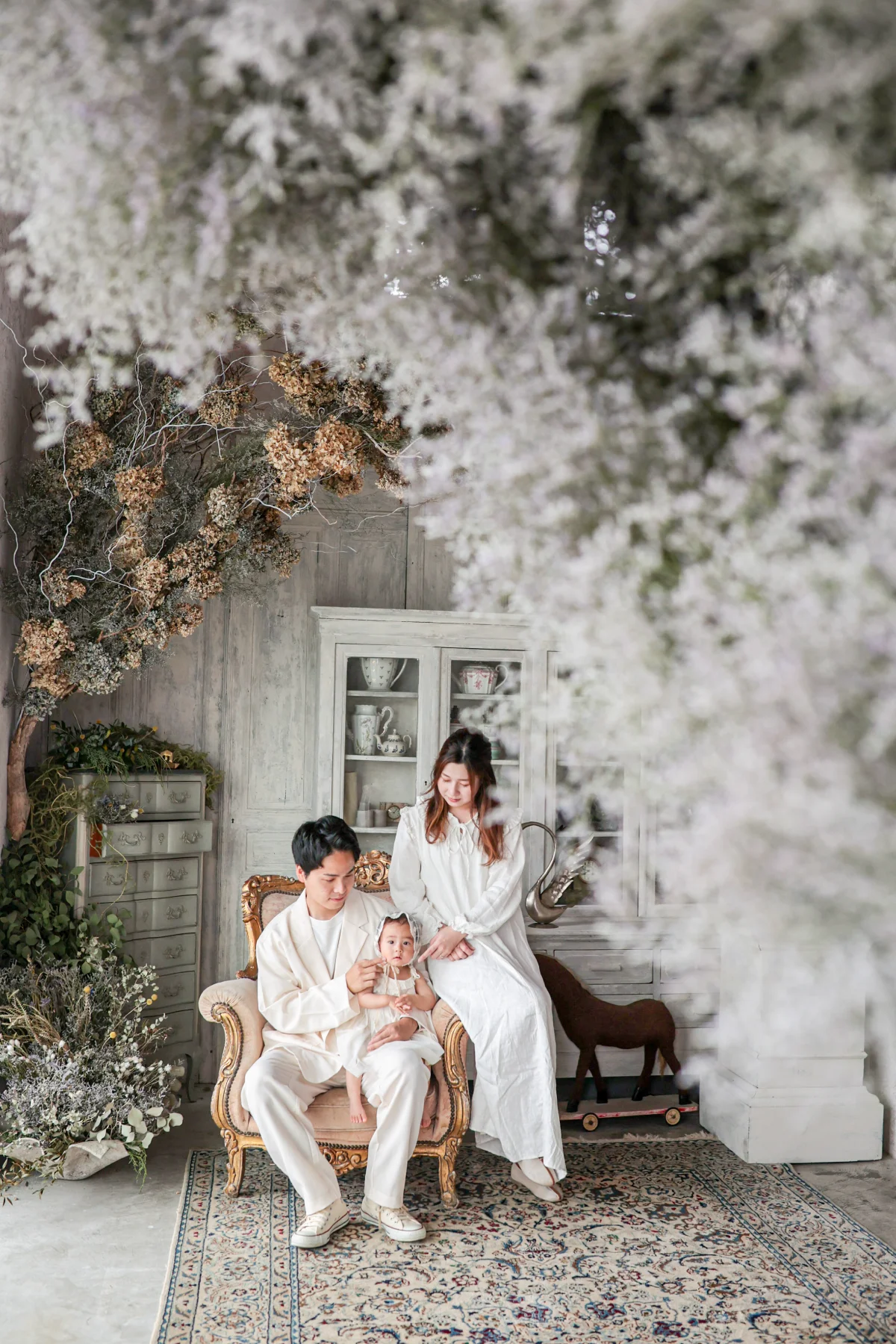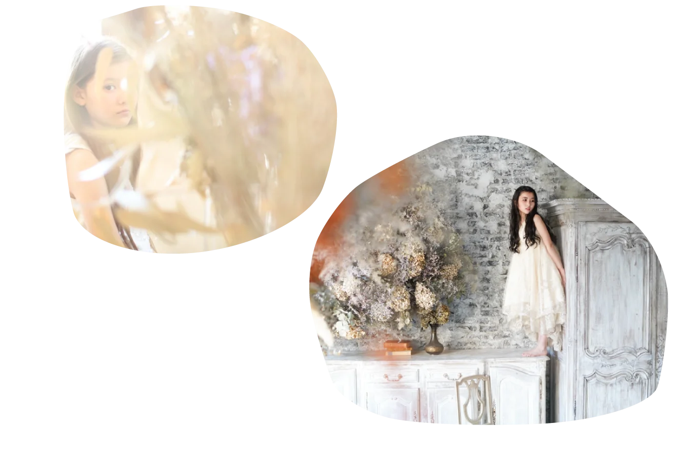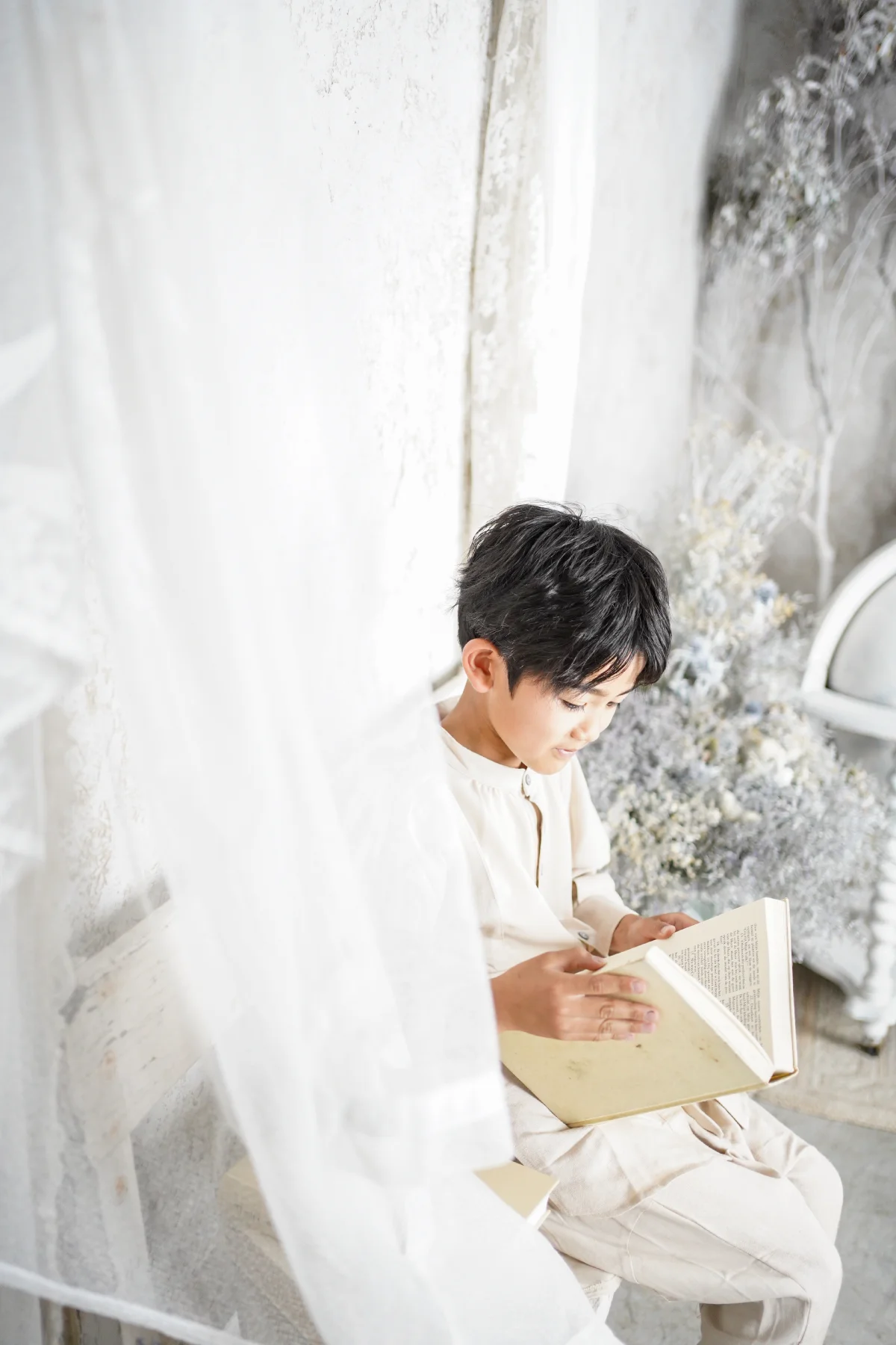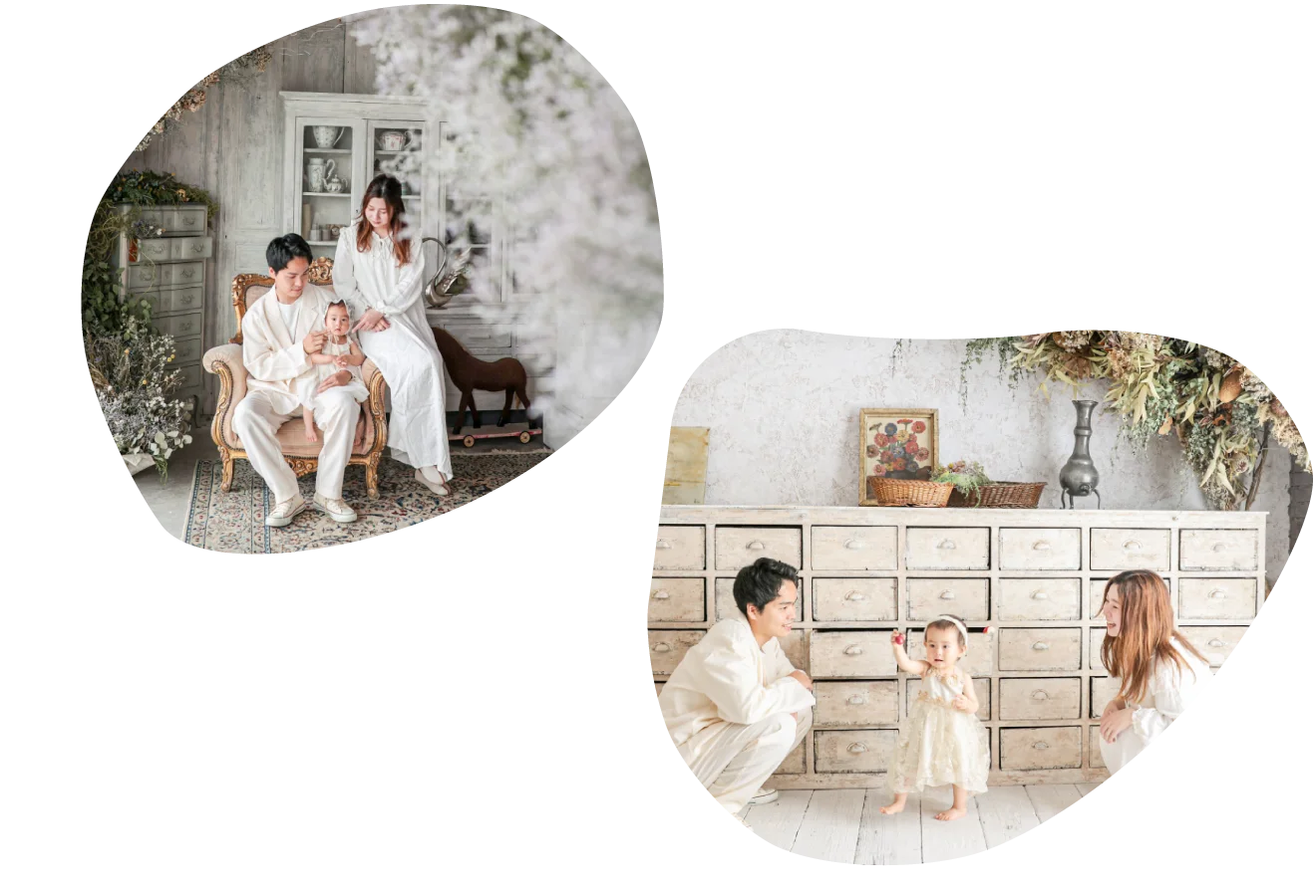 大きな窓から降り注ぐ自然光と、本物のアンティーク家具が調和する空間で、お子様の自然で美しい表情を描き出します。