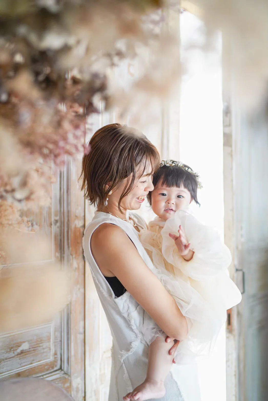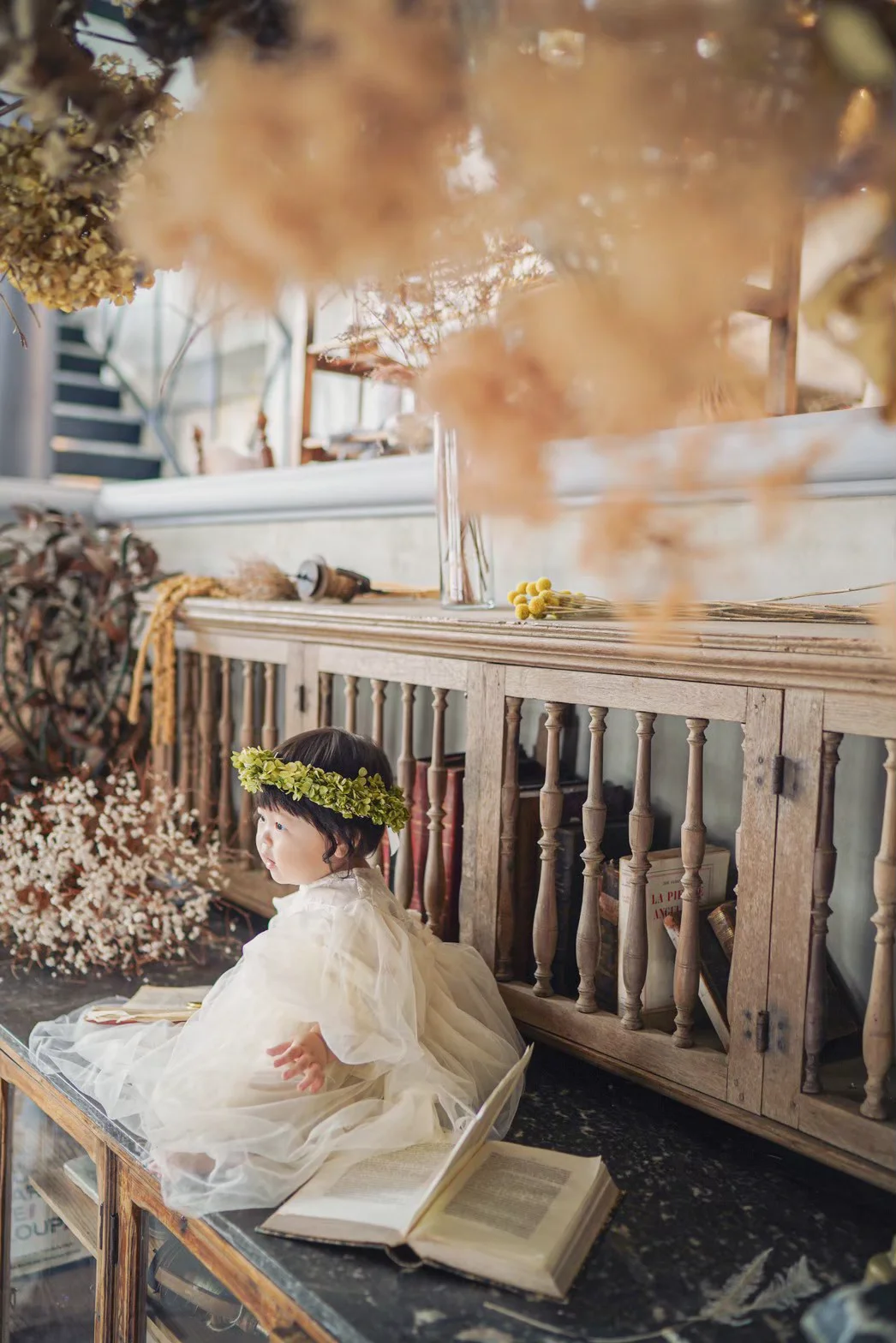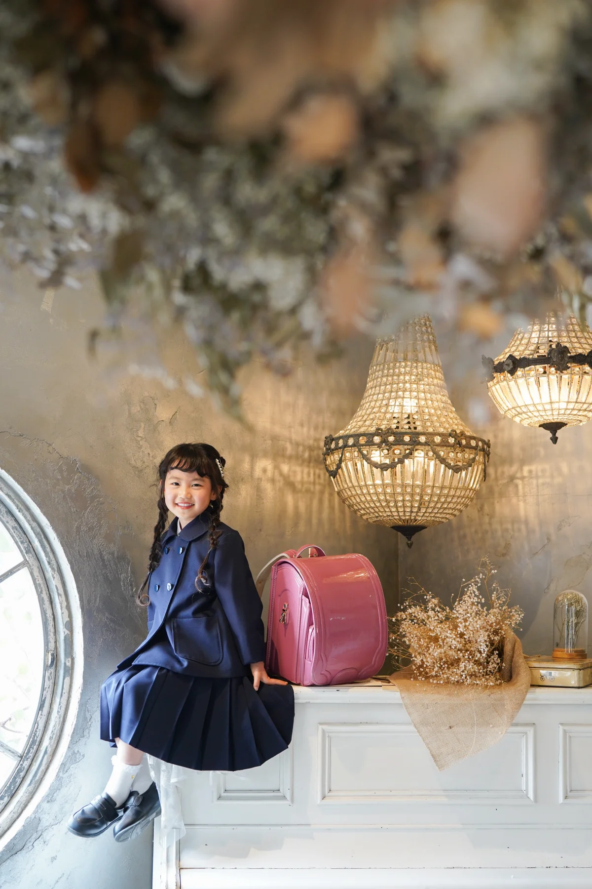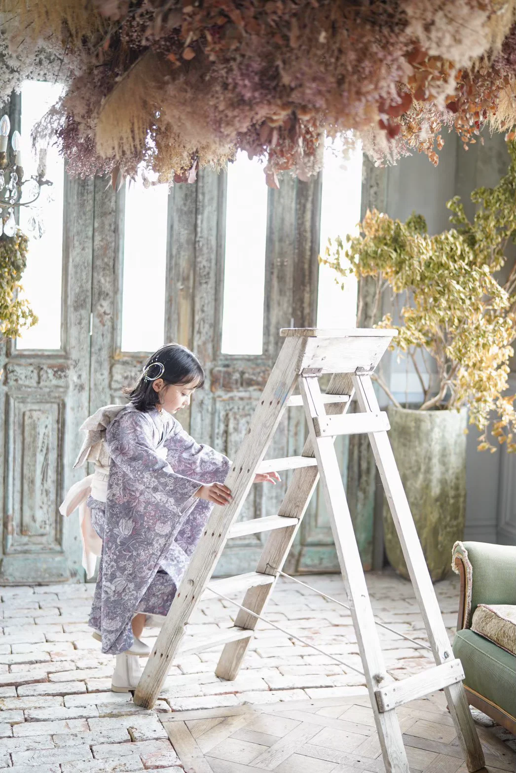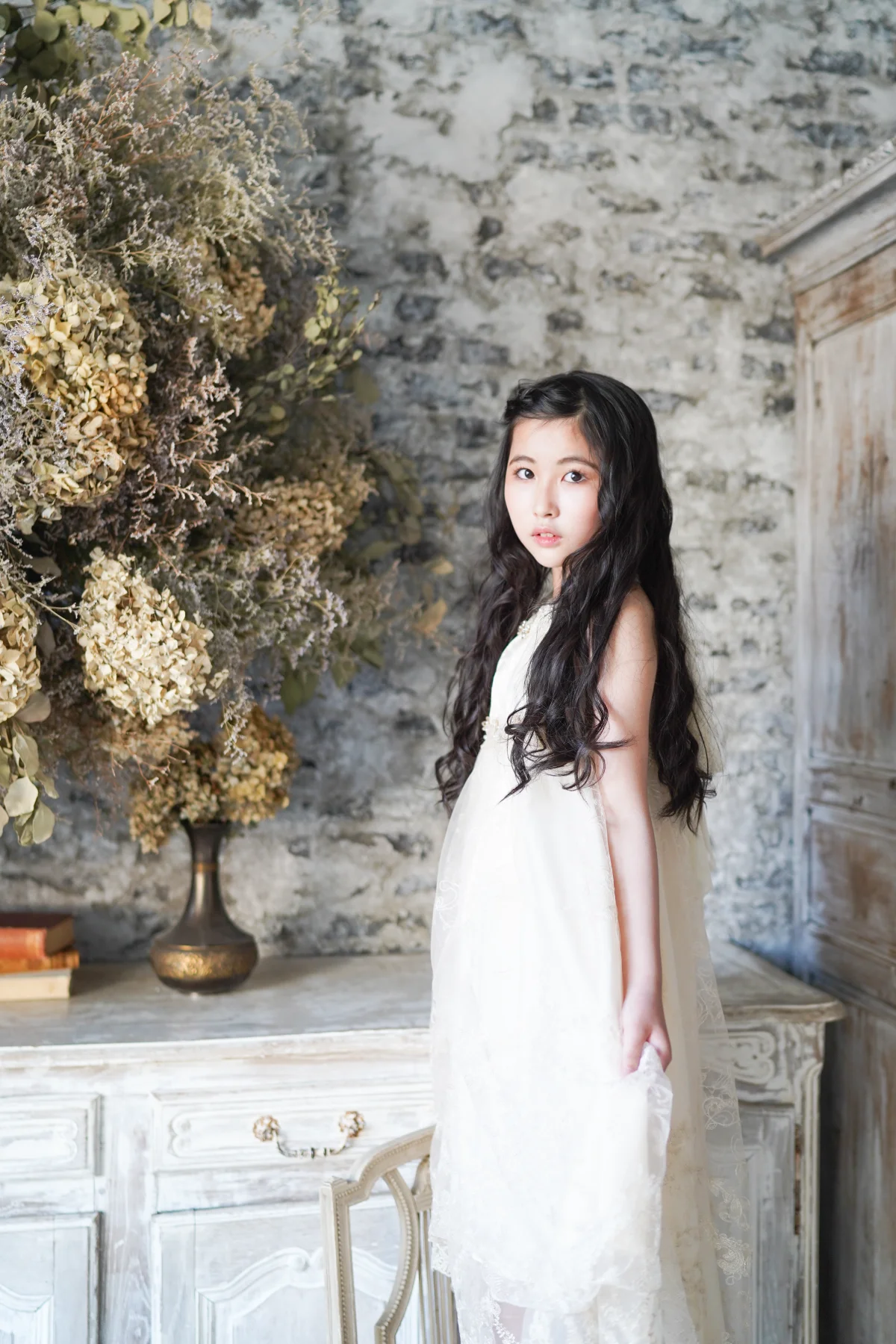 大きな窓から降り注ぐ自然光と、本物のアンティーク家具が調和する空間で、お子様の自然で美しい表情を描き出します。