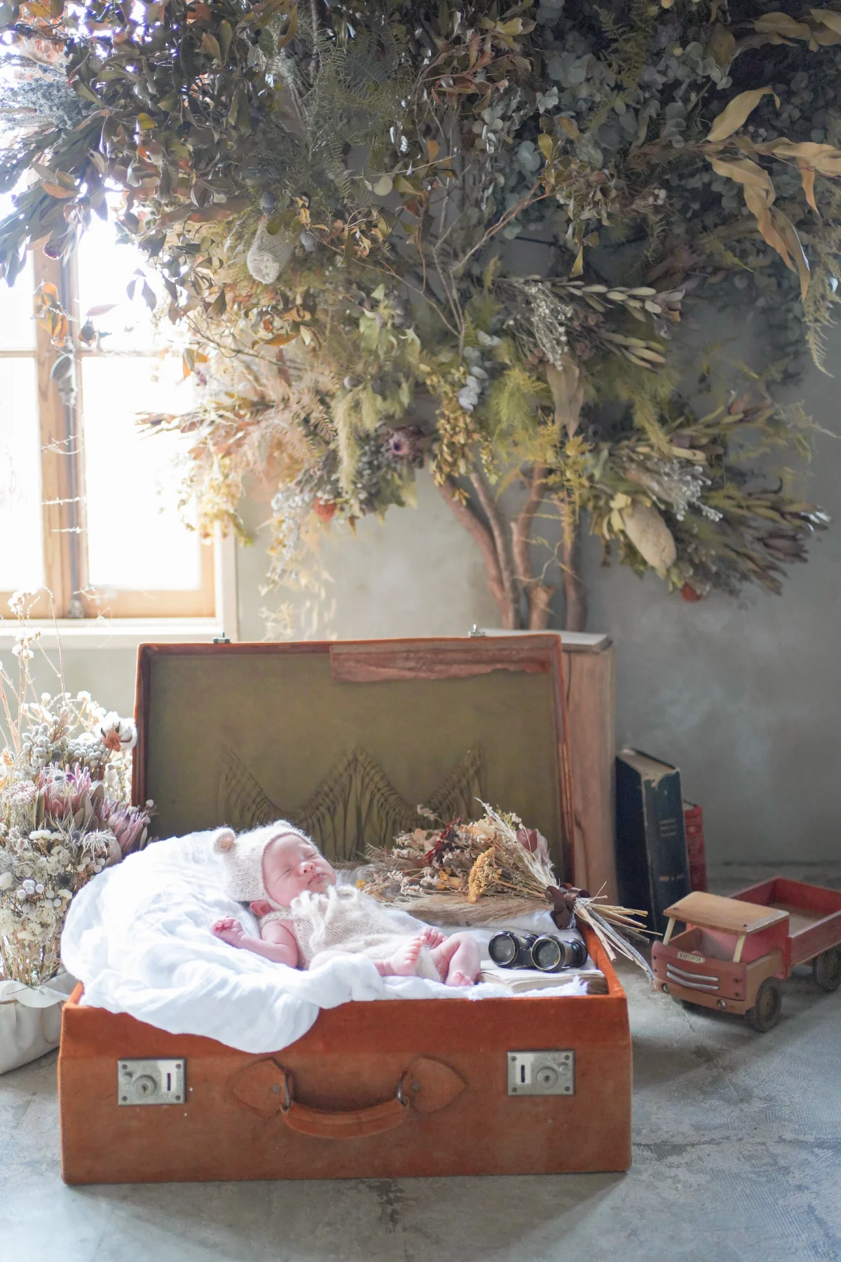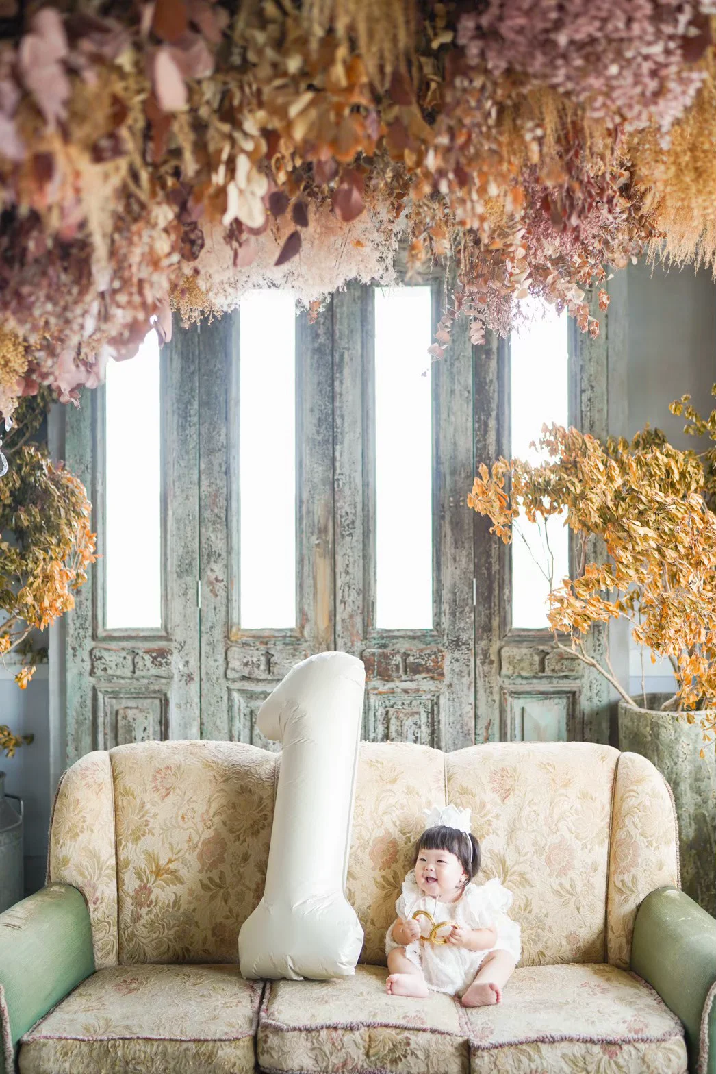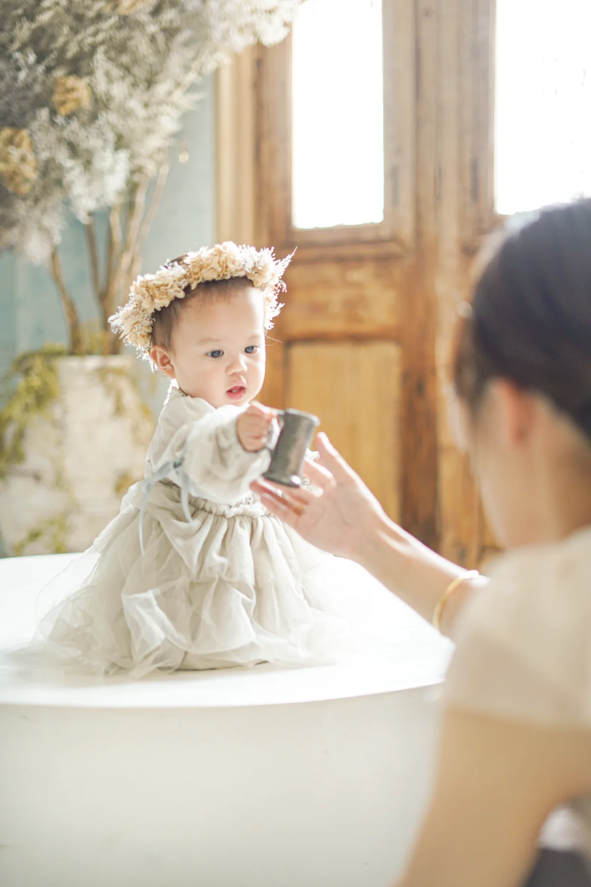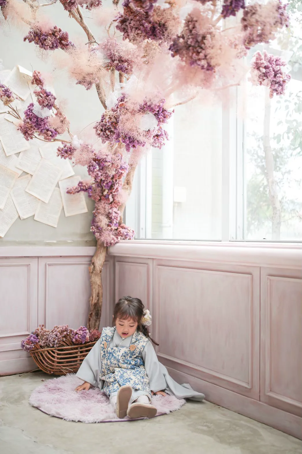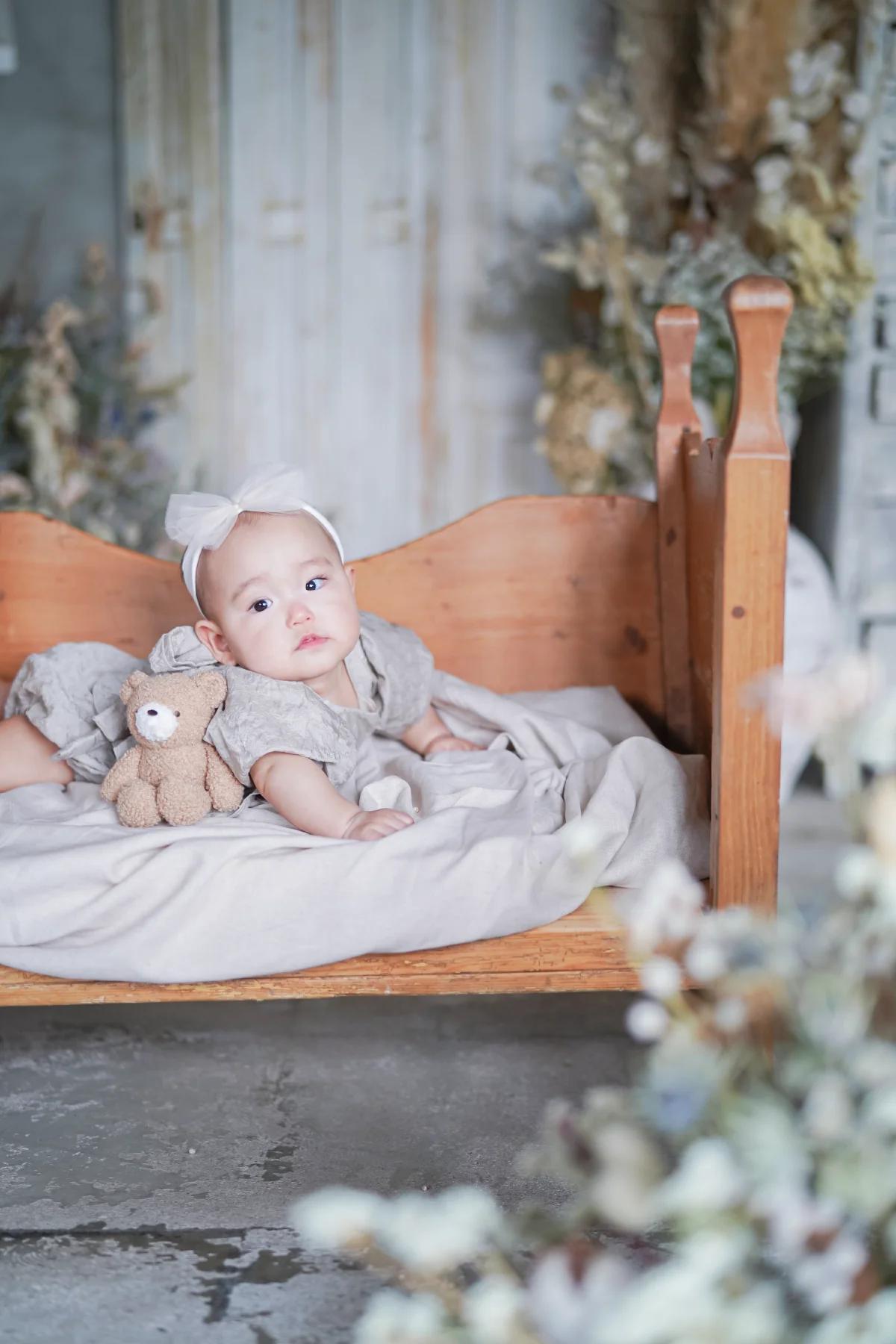大きな窓から降り注ぐ自然光と、本物のアンティーク家具が調和する空間で、お子様の自然で美しい表情を描き出します。